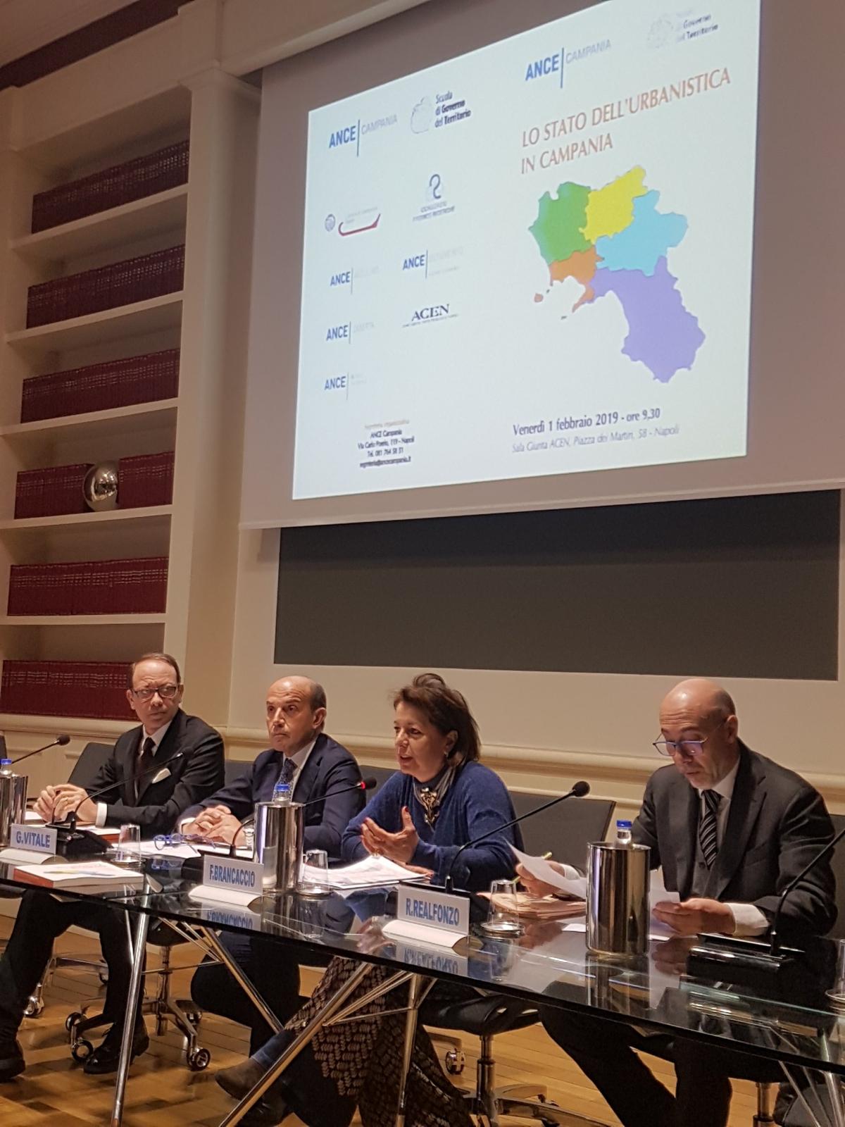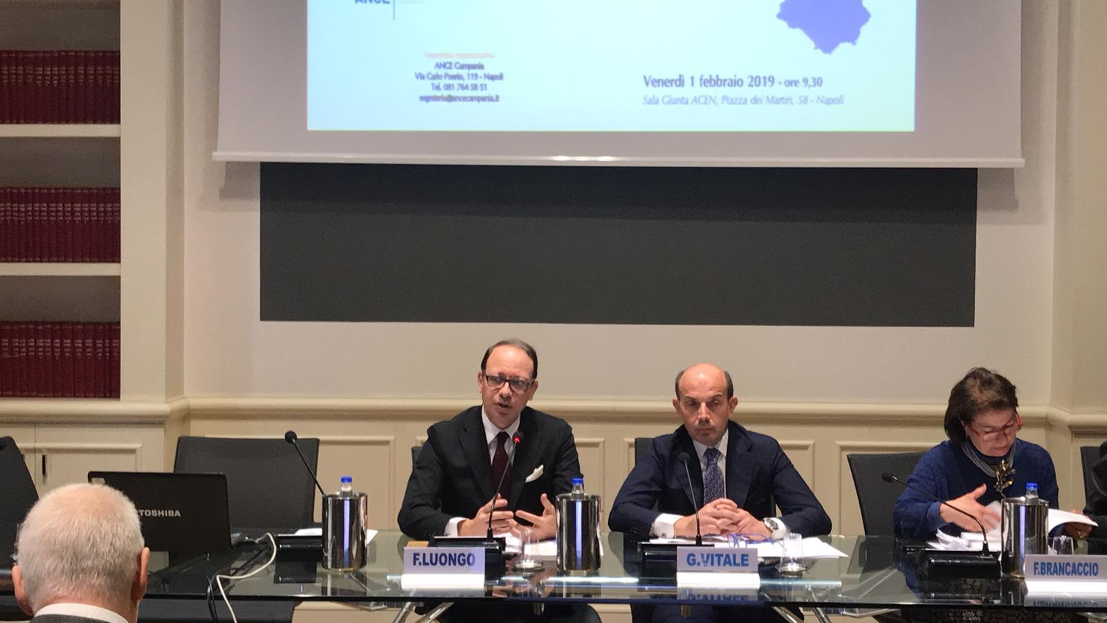 Lo scorso 1 febbraio 2019 è stata presentata la ricerca "La pianificazione urbanistica in Campania", promossa da ANCE Campania e Scuola di Governo del Territorio dove è intervenuto il Vice presidente vicario della CCIAA di Napoli, Fabrizio Luongo, che ha portato il saluto e l’apprezzamento del Presidente Ciro Fiola per il lavoro svolto.