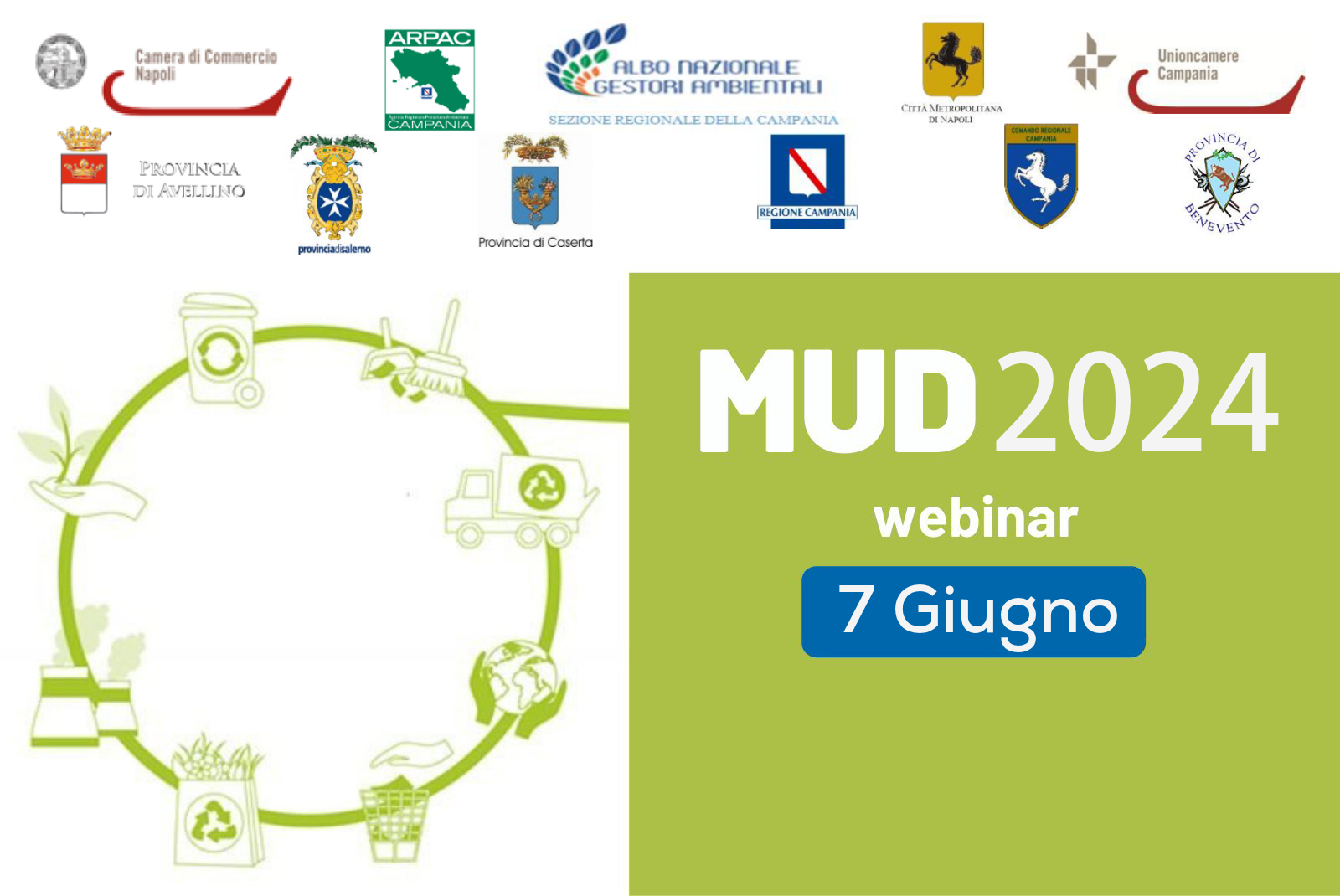 La Camera di commercio di Napoli per consentire, a tutti gli operatori ambientali, pubblici e privati, che hanno gestito rifiuti nel corso dell’anno 2023 (produttori, trasportatori, associazioni di categoria consulenti, ecc.), di conoscere le modalità di compilazione e di invio del Modello Unico di Dichiarazione ambientale – MUD Imprese 2024, organizza, nell'ambito del Protocollo d'intesa sulla legalità ambientale, in collaborazione con la Sezione regionale dell’Albo gestori ambientali della Campania e la società del sistema camerale ECOCERVED, un webinar informativo gratuito per il giorno 7 giugno 2024 articolato come segue.